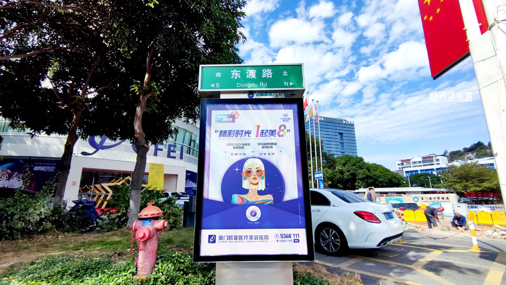 值此歐菲品牌周年慶之際,歐菲品牌在廈門(mén)島內(nèi)各個(gè)黃金路段(仙岳路、嘉禾路、湖濱南路、鷺江道、環(huán)島干道、東渡路等)投放超過(guò)400座城市路名牌和200座社區(qū)快遞柜媒體(集中在中高端人群住宅區(qū)、居住率較為密集的生活居住區(qū))。
