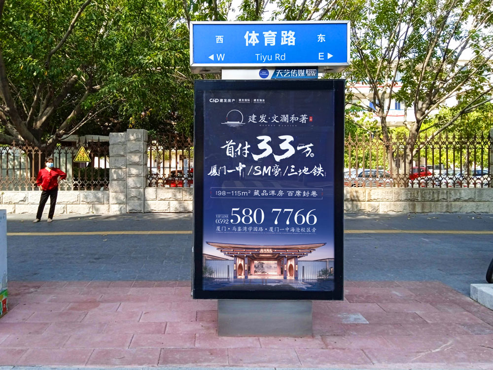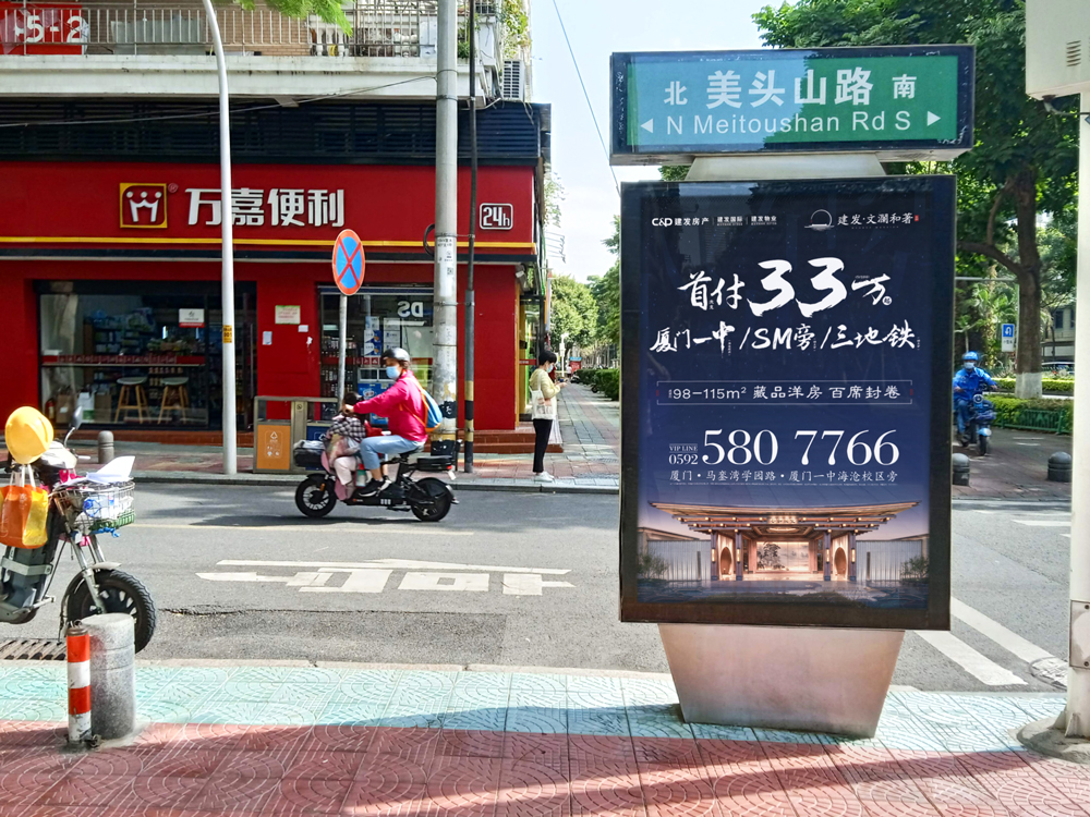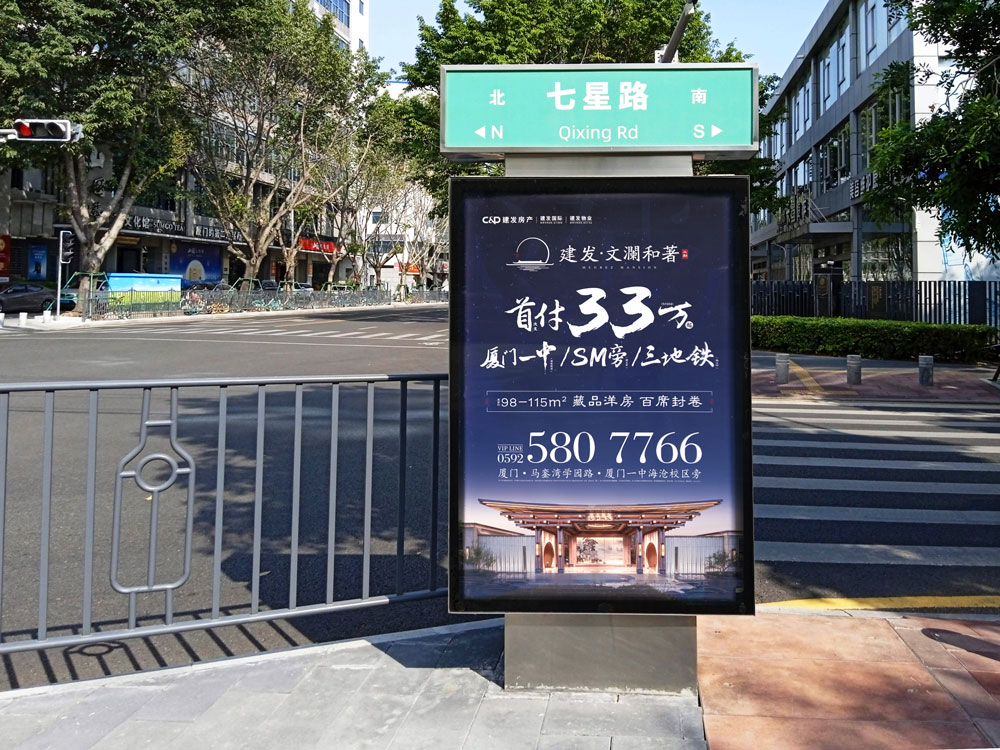 本次建發(fā)文瀾和著二期樓盤(pán)再次與天藝傳媒攜手,共同續(xù)寫(xiě)輝煌。建發(fā)文瀾和著二期開(kāi)盤(pán),再次選擇投放戶外城市路名牌超過(guò)100座,且均在島內(nèi)黃金點(diǎn)位覆蓋,包括主干道,如:廈禾路、體育路、金尚路、湖濱中路、禾祥西路、禾祥東路等車流人流密集路段,以及商超圈周邊路段,如:火車站羅賓森、思北路口、輪渡周邊。