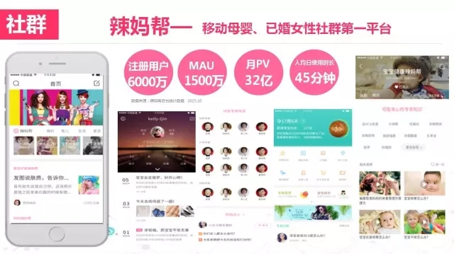 辣媽幫創(chuàng)立于2012年5月,僅用了4年時間,便擁有了6000萬的用戶。辣媽幫致力于打造全新母嬰生態(tài)鏈,旗下四大應(yīng)用“孕期伴侶-辣媽幫-荷花親子-辣媽商城”涵蓋了女性“育兒-生活-情感-消費”四大領(lǐng)域。