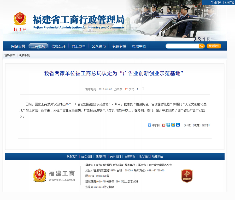 日前,國家工商總局認(rèn)定推出30個(gè)“廣告業(yè)創(chuàng)新創(chuàng)業(yè)示范基地”。其中,我省的“福建閩臺(tái)廣告創(chuàng)業(yè)孵化器”和廈門“天藝文創(chuàng)孵化基地”榜上有名。近年來,我省廣告業(yè)發(fā)展較快,廣告經(jīng)營總額年均增長均達(dá)10%以上,在福州、廈門、泉州等地建成了四個(gè)省級(jí)廣告產(chǎn)業(yè)園區(qū)。